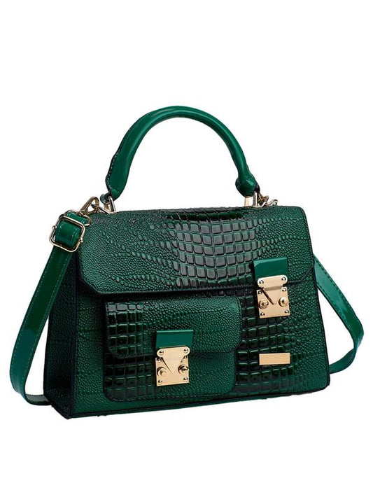 Fashionable Crocodile Embossed Pu Leather Texture Handbag, Simple Plain Buckle Decoration Crossbo...