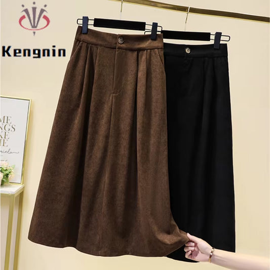 Women's Corduroy Midi A-Line Skirt Oversized Elastic Waist